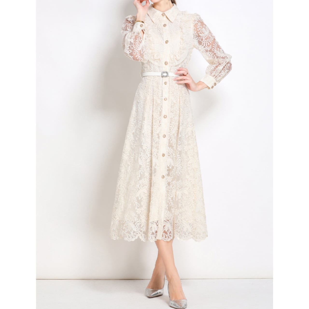 繊細なレースに包まれた、クラシカルなボタンワンピース。 ほどよい透け感と優しいカラーが、上品な華やかさを添えます。 お呼ばれや特別な日、少し背筋を伸ばしたい日に。 【サイズ】 S 肩幅:34cm 胸囲:86cm ウエスト:70cm 総丈:124cm 袖丈:66cm M 肩幅:35cm 胸囲:90cm ウエスト:74cm 総丈:125cm 袖丈:67cm L 肩幅:36cm 胸囲:94cm ウエスト:78cm 総丈:126cm 袖丈:68cm XL 肩幅:37cm 胸囲:98cm ウエスト:82cm 総丈:127cm 袖丈:69cm 2XL 肩幅:38cm 胸囲:102cm ウエスト:86cm 総丈:128cm 袖丈:70cm ※海外製品のため、若干の誤差が生じる場合がございます。 あらかじめご了承ください。 ※小柄な方は、ヒール合わせでバランス良く着こなせます。 【カラー】 オフホワイト 【素材】 ポリエステル 【お届けについて】 本商品は海外提携店舗より直接お届けいたします。 ご入金の確認後、おおよそ3週間前後で発送いたします。 【ご購入前にご確認ください】 ・在庫状況により、ご注文後でもキャンセルとさせていただく場合がございます。 ・海外製品のため、日本製品とは検品基準が異なります。新品未使用品でも、わずかな糸のほつれや軽微な汚れが見られる場合がございます。 ・商品の色味は、ご使用の端末やモニター環境により実際と異なる場合がございます。 ・イメージ違い・サイズ違いなど、お客様都合による返品・交換・キャンセルはお受けいたしかねます。 【ブランド公式サイト】 RANNÉ Official Site https://shop.ran-ne.com/ 【詳細ガイド】 ご購入前に必ずこちらをご覧ください。 → https://shop.ran-ne.com/about 静かに纏うような美しさを ―― RANNÉは、日常にも特別な日にも寄り添うスタイルをお届けします。