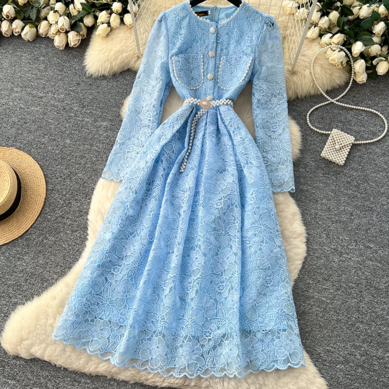 繊細なレースに包まれた上品なワンピース。 淡い色合いが柔らかく、清楚で華やかな印象を与えます。 お呼ばれや特別な日、穏やかな時間を過ごすシーンにも。 【サイズ】 S: 胸囲:86cm ウエスト:68cm 総丈:115cm 袖丈:60cm M: 胸囲:90cm ウエスト:72cm 総丈:116cm 袖丈:61cm L: 胸囲:94cm ウエスト:76cm 総丈:117cm 袖丈:62cm XL: 胸囲:98cm ウエスト:80cm 総丈:118cm 袖丈:63cm 2XL:胸囲:102cm ウエスト:84cm 総丈:119cm 袖丈:64cm ※海外製品のため、若干の誤差が生じる場合がございます。 あらかじめご了承ください。 ※身長150cm前後の方は、ふくらはぎ下〜ミモレ丈の着丈となります。 ヒール合わせでバランス良くご着用いただけます。 【カラー】 ライトブルー 【素材】 ポリエステル 【お届けについて】 本商品は海外提携店舗より直接お届けいたします。 ご入金の確認後、おおよそ3週間前後で発送いたします。 【ご購入前にご確認ください】 ・在庫状況により、ご注文後でもキャンセルとさせていただく場合がございます。 ・海外製品のため、日本製品とは検品基準が異なります。新品未使用品でも、わずかな糸のほつれや軽微な汚れが見られる場合がございます。 ・商品の色味は、ご使用の端末やモニター環境により実際と異なる場合がございます。 ・イメージ違い・サイズ違いなど、お客様都合による返品・交換・キャンセルはお受けいたしかねます。 【ブランド公式サイト】 RANÉE Official Site https://shop.ran-ne.com/ 【詳細ガイド】 ご購入前に必ずこちらをご覧ください。 → https://shop.ran-ne.com/about 静かに纏うような美しさを ―― RANÉEは、日常にも特別な日にも寄り添うスタイルをお届けします。