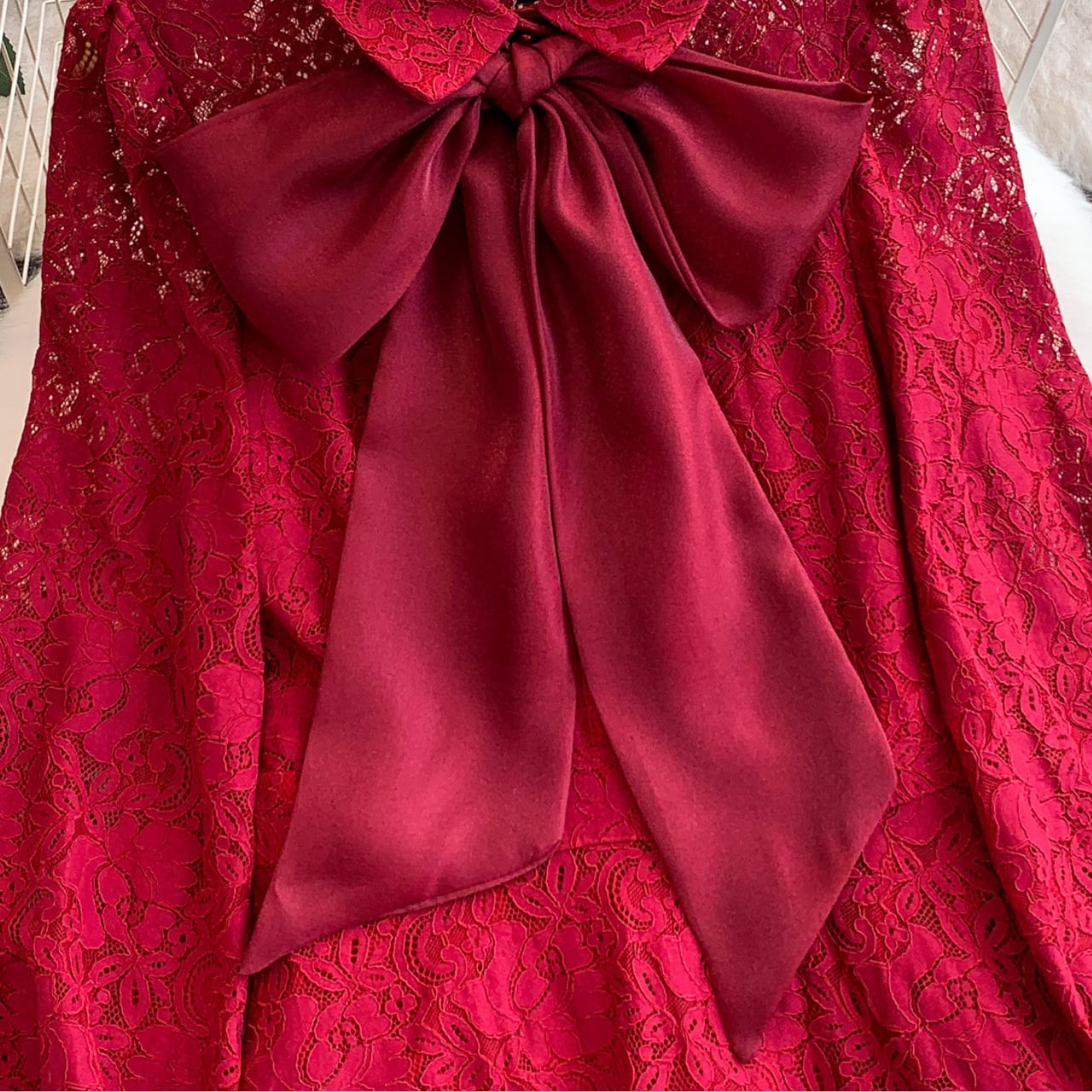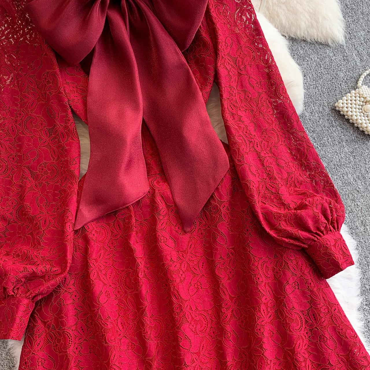 深みのあるボルドーカラーが印象的なレースドレス。 大きなリボンが華やかさを添え、動くたびに上品な表情を見せます。 お呼ばれやフォーマルシーンに、落ち着いた存在感を纏って。 【サイズ】 S: 肩幅:35cm 胸囲:84cm ウエスト:68cm 総丈:128cm 袖丈:64cm M: 肩幅:36cm 胸囲:88cm ウエスト:72cm 総丈:129cm 袖丈:65cm L: 肩幅:37cm 胸囲:92cm ウエスト:76cm 総丈:130cm 袖丈:66cm XL: 肩幅:38cm 胸囲:96cm ウエスト:80cm 総丈:131cm 袖丈:67cm 2XL:肩幅:39cm 胸囲:100cm ウエスト:84cm 総丈:132cm 袖丈:68cm ※海外製品のため、若干の誤差が生じる場合がございます。 あらかじめご了承ください。 ※身長150cm前後の方は、くるぶしにかかる丈感となります。 ヒール合わせでバランス良くご着用いただけます。 【カラー】 レッド 【素材】 ポリエステル 【お届けについて】 本商品は海外提携店舗より直接お届けいたします。 ご入金の確認後、おおよそ3週間前後で発送いたします。 【ご購入前にご確認ください】 ・在庫状況により、ご注文後でもキャンセルとさせていただく場合がございます。 ・海外製品のため、日本製品とは検品基準が異なります。新品未使用品でも、わずかな糸のほつれや軽微な汚れが見られる場合がございます。 ・商品の色味は、ご使用の端末やモニター環境により実際と異なる場合がございます。 ・イメージ違い・サイズ違いなど、お客様都合による返品・交換・キャンセルはお受けいたしかねます。 【ブランド公式サイト】 RANNÉ Official Site https://shop.ran-ne.com/ 【詳細ガイド】 ご購入前に必ずこちらをご覧ください。 → https://shop.ran-ne.com/about 静かに纏うような美しさを ―― RANNÉは、日常にも特別な日にも寄り添うスタイルをお届けします。