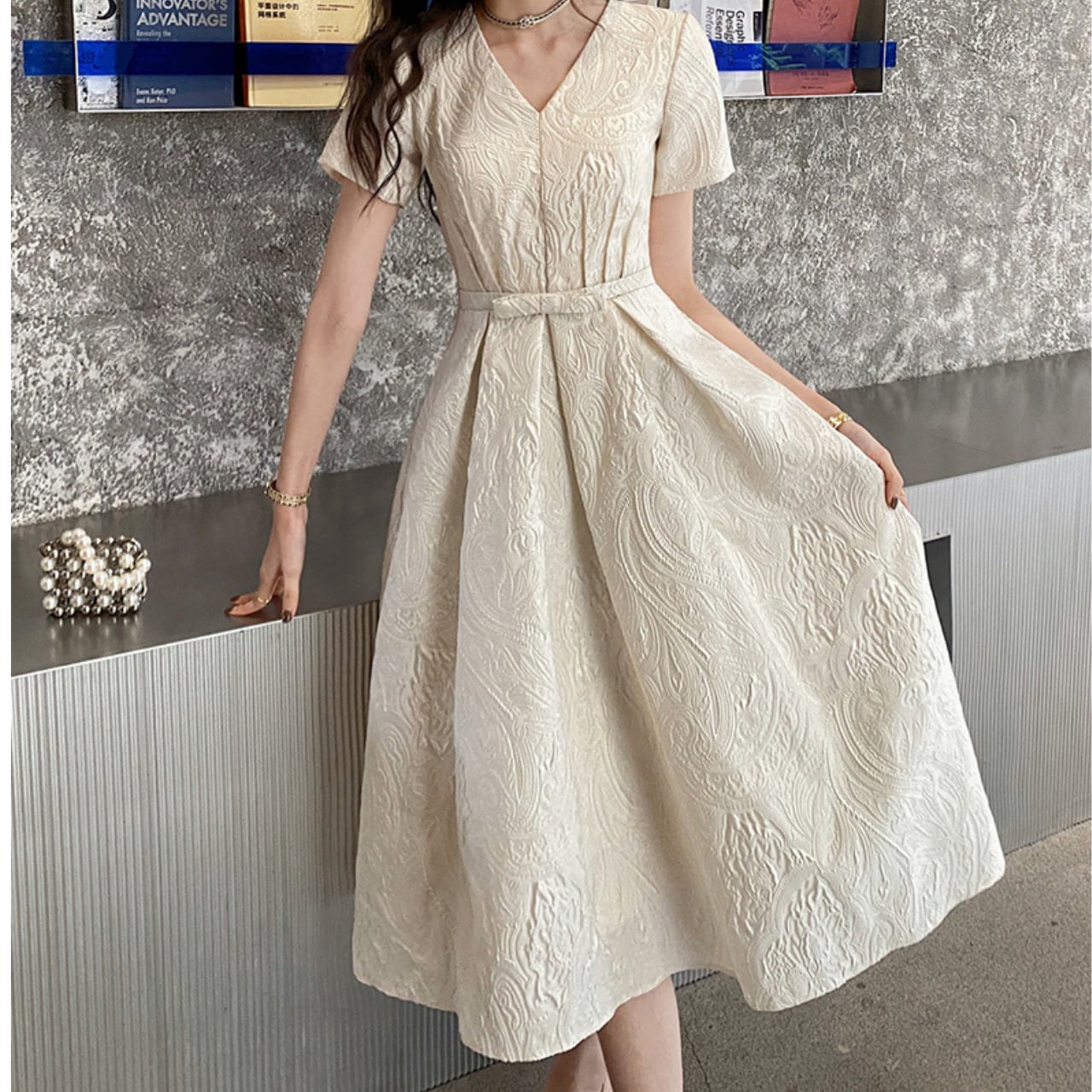 上品なジャカード生地が、光を柔らかく受けて美しく映えるドレス。 シンプルなVネックとフレアシルエットが、凛とした女性らしさを引き立てます。 フォーマルなシーンにも、落ち着いた華やかさを添える一枚。 【サイズ】 XS: 胸囲:80cm ウエスト:63cm S: 胸囲:83cm ウエスト:66cm M: 胸囲:86cm ウエスト:70cm L: 胸囲:90cm ウエスト:73cm XL: 胸囲:93cm ウエスト:76cm 2XL:胸囲:96cm ウエスト:80cm ※海外製品のため、若干の誤差が生じる場合がございます。 あらかじめご了承ください。 【カラー】 シャンパン 【素材】 ポリエステル 【お届けについて】 本商品は海外提携店舗より直接お届けいたします。 ご入金の確認後、おおよそ3週間前後で発送いたします。 【ご購入前にご確認ください】 ・在庫状況により、ご注文後でもキャンセルとさせていただく場合がございます。 ・海外製品のため、日本製品とは検品基準が異なります。新品未使用品でも、わずかな糸のほつれや軽微な汚れが見られる場合がございます。 ・商品の色味は、ご使用の端末やモニター環境により実際と異なる場合がございます。 ・イメージ違い・サイズ違いなど、お客様都合による返品・交換・キャンセルはお受けいたしかねます。 【ブランド公式サイト】 RANNÉ Official Site https://shop.ran-ne.com/ 【詳細ガイド】 ご購入前に必ずこちらをご覧ください。 → https://shop.ran-ne.com/about 静かに纏うような美しさを ―― RANNÉは、日常にも特別な日にも寄り添うスタイルをお届けします。