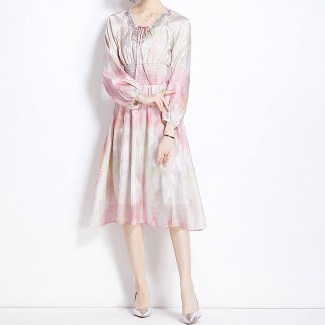 淡い光をまとったような、幻想的なオーロラカラーのドレス。 やわらかく揺れるシフォンに光沢が重なり、見る角度によって印象が変わる上品な一枚です。 優しく滲むピンクとパールの艶が、穏やかな華やかさを添えてくれます。 【サイズ】 S 肩幅:37cm 胸囲:95cm ウエスト:74cm(伸縮性あり) 総丈:106cm 袖丈:63cm M 肩幅:38cm 胸囲:99cm ウエスト:78cm(伸縮性あり) 総丈:107cm 袖丈:64cm L 肩幅:39cm 胸囲:103cm ウエスト:82cm(伸縮性あり) 総丈:108cm 袖丈:65cm XL 肩幅:40cm 胸囲:107cm ウエスト:86cm(伸縮性あり) 総丈:109cm 袖丈:66cm XXL 肩幅:41cm 胸囲:111cm ウエスト:90cm(伸縮性あり) 総丈:110cm 袖丈:67cm ※海外製品のため、若干の誤差が生じる場合がございます。 あらかじめご了承ください。 【カラー】 ピンク 【素材】 ポリエステル 【お届けについて】 本商品は海外提携店舗より直接お届けいたします。 ご入金の確認後、おおよそ3週間前後で発送いたします。 【ご購入前にご確認ください】 ・在庫状況により、ご注文後でもキャンセルとさせていただく場合がございます。 ・海外製品のため、日本製品とは検品基準が異なります。新品未使用品でも、わずかな糸のほつれや軽微な汚れが見られる場合がございます。 ・商品の色味は、ご使用の端末やモニター環境により実際と異なる場合がございます。 ・イメージ違い・サイズ違いなど、お客様都合による返品・交換・キャンセルはお受けいたしかねます。 【ブランド公式サイト】 RANNÉ Official Site https://shop.ran-ne.com/ 【詳細ガイド】 ご購入前に必ずこちらをご覧ください。 → https://shop.ran-ne.com/about 静かに纏うような美しさを ―― RANNÉは、日常にも特別な日にも寄り添うスタイルをお届けします。