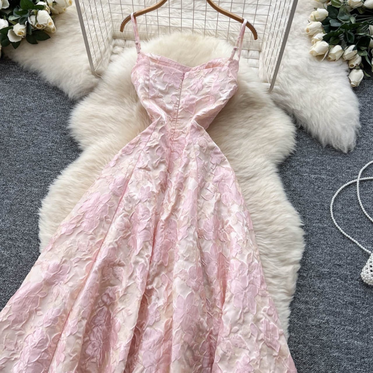 淡いピンクのフラワージャカードが繊細にきらめくドレス。 光の角度によってやさしく表情を変える生地が、軽やかで女性らしい印象を引き立てます。 ふんわり広がるフレアシルエットが上品に揺れ、特別な日をやさしく包み込むような一着です。 【サイズ】 S 胸囲:84cm ウエスト:68cm 総丈:122cm M 胸囲:88cm ウエスト:72cm 総丈:123cm L 胸囲:92cm ウエスト:76cm 総丈:124cm XL 胸囲:96cm ウエスト:80cm 総丈:125cm 2XL 胸囲:100cm ウエスト:84cm 総丈:126cm ※海外製品のため、若干の誤差が生じる場合がございます。 あらかじめご了承ください。 【カラー】 ピンク 【素材】 ポリエステル 【お届けについて】 本商品は海外提携店舗より直接お届けいたします。 ご入金の確認後、おおよそ3週間前後で発送いたします。 【ご購入前にご確認ください】 ・在庫状況により、ご注文後でもキャンセルとさせていただく場合がございます。 ・海外製品のため、日本製品とは検品基準が異なります。新品未使用品でも、わずかな糸のほつれや軽微な汚れが見られる場合がございます。 ・商品の色味は、ご使用の端末やモニター環境により実際と異なる場合がございます。 ・イメージ違い・サイズ違いなど、お客様都合による返品・交換・キャンセルはお受けいたしかねます。 【ブランド公式サイト】 RANNÉ Official Site https://shop.ran-ne.com/ 【詳細ガイド】 ご購入前に必ずこちらをご覧ください。 → https://shop.ran-ne.com/about 静かに纏うような美しさを ―― RANNÉは、日常にも特別な日にも寄り添うスタイルをお届けします。