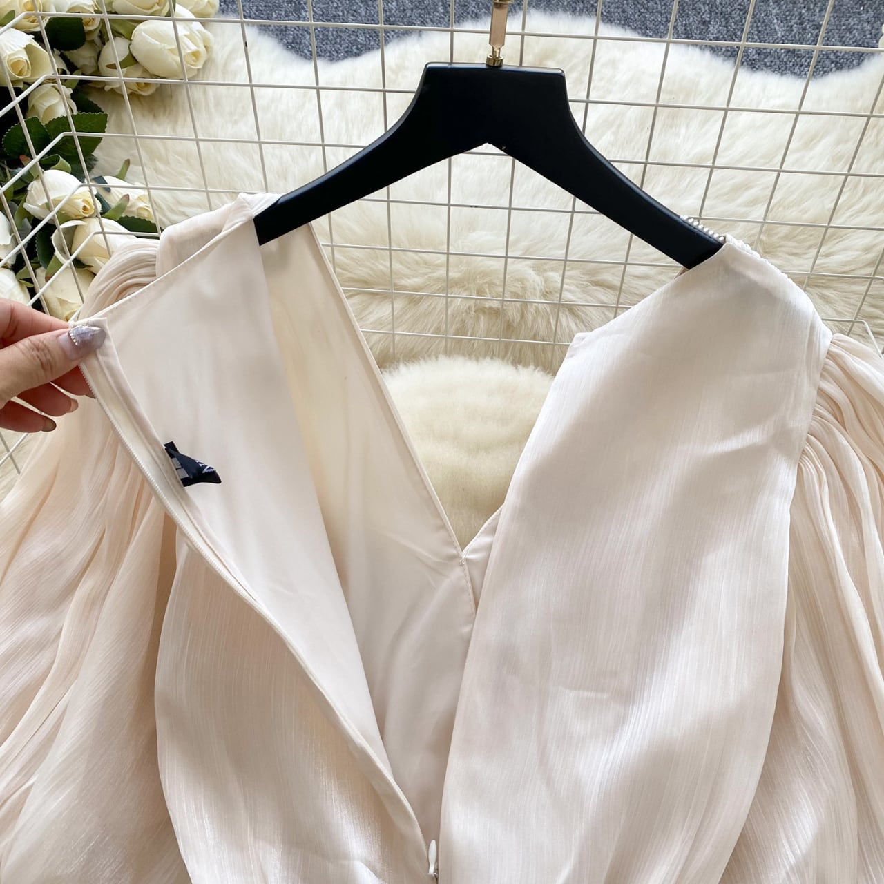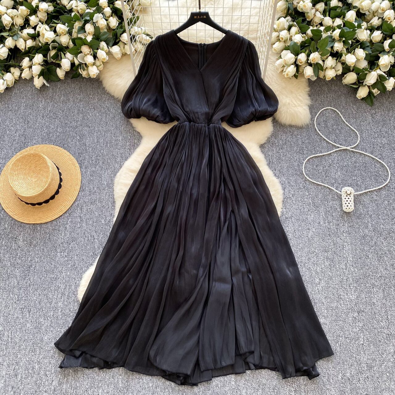淡く光をまとったような、しなやかな艶のあるロングドレス。 軽やかに揺れるプリーツが動くたびに表情を変え、袖のボリュームがふんわりとやさしい印象を添えます。 一枚で存在感がありながら、決して派手すぎない上品な佇まい。 特別な日にも、静かに華を添える一着です。 【サイズ】 M 胸囲:90cm 袖丈:35.5cm 肩幅:35cm ウエスト(ゴム):72cm 総丈:137cm L 胸囲:94cm 袖丈:36cm 肩幅:36cm ウエスト(ゴム):76cm 総丈:138cm XL 胸囲:98cm 袖丈:36.5cm 肩幅:37cm ウエスト(ゴム):80cm 総丈:139cm 2XL 胸囲:102cm 袖丈:37cm 肩幅:38cm ウエスト(ゴム):84cm 総丈:140cm ※海外製品のため、若干の誤差が生じる場合がございます。 あらかじめご了承ください。 【カラー】 オフホワイト ブラック 【素材】 ポリエステル 【お届けについて】 本商品は海外提携店舗より直接お届けいたします。 ご入金の確認後、おおよそ3週間前後で発送いたします。 【ご購入前にご確認ください】 ・在庫状況により、ご注文後でもキャンセルとさせていただく場合がございます。 ・海外製品のため、日本製品とは検品基準が異なります。新品未使用品でも、わずかな糸のほつれや軽微な汚れが見られる場合がございます。 ・商品の色味は、ご使用の端末やモニター環境により実際と異なる場合がございます。 ・イメージ違い・サイズ違いなど、お客様都合による返品・交換・キャンセルはお受けいたしかねます。 【ブランド公式サイト】 RANNÉ Official Site https://shop.ran-ne.com/ 【詳細ガイド】 ご購入前に必ずこちらをご覧ください。 → https://shop.ran-ne.com/about 静かに纏うような美しさを ―― RANNÉは、日常にも特別な日にも寄り添うスタイルをお届けします。
