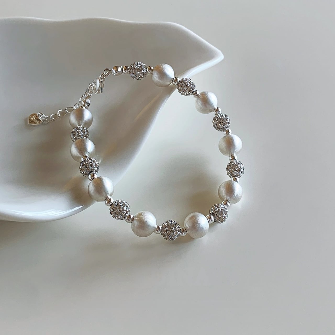艶やかなパールときらめくストーンを交互に並べたブレスレット。