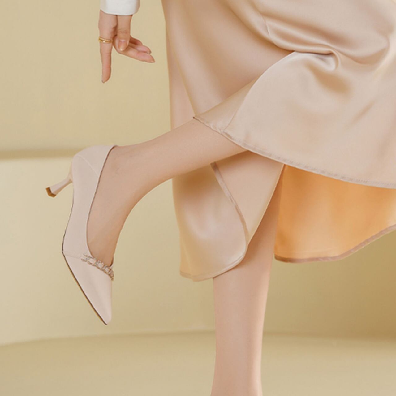 繊細なチェーンをあしらった、エレガントなポインテッドトゥパンプス。 艶を抑えたマットな質感が上品で、フォーマルシーンでも日常の装いにも自然に馴染みます。 足元に少しの輝きを添えたいときにぴったりの一足。 【サイズ】 35 約22.5cm 36 約23cm 37 約23.5cm 38 約24cm 39 約24.5cm ヒール高:約6.5cm つま先幅:約7.5cm ※海外製品のため、若干の誤差が生じる場合がございます。 あらかじめご了承ください。 【カラー】 オフホワイト ブラック 【素材】 靴表素材:合成皮革 内側素材:合成皮革 中敷素材:PU 【お届けについて】 本商品は海外提携店舗より直接お届けいたします。 ご入金の確認後、おおよそ3週間前後で発送いたします。 【ご購入前にご確認ください】 ・在庫状況により、ご注文後でもキャンセルとさせていただく場合がございます。 ・海外製品のため、日本製品とは検品基準が異なります。新品未使用品でも、わずかな糸のほつれや軽微な汚れが見られる場合がございます。 ・商品の色味は、ご使用の端末やモニター環境により実際と異なる場合がございます。 ・イメージ違い・サイズ違いなど、お客様都合による返品・交換・キャンセルはお受けいたしかねます。 【ブランド公式サイト】 RANNÉ Official Site https://shop.ran-ne.com/ 【詳細ガイド】 ご購入前に必ずこちらをご覧ください。 → https://shop.ran-ne.com/about 静かに纏うような美しさを ―― RANNÉは、日常にも特別な日にも寄り添うスタイルをお届けします。
