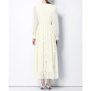 やわらかなシフォンに流れるようなフリルをあしらったロングドレス。 高めのウエストラインが美しく、立ち姿をより凛と引き立てます。 軽やかな生地の揺れが上品に映え、静かに華やぐ存在感を放つ一着。 【サイズ】 M 胸囲:92cm 袖丈:57cm 着丈:134cm L 胸囲:94cm 袖丈:58cm 着丈:135cm XL. 胸囲:96cm 袖丈:59cm 着丈:136cm 2XL 胸囲:98cm 袖丈:60cm 着丈:137cm ※海外製品のため、若干の誤差が生じる場合がございます。 あらかじめご了承ください。 【カラー】 ブラック アイボリー ピンク ライトブルー 【素材】 ポリエステル 【お届けについて】 本商品は海外提携店舗より直接お届けいたします。 ご入金の確認後、おおよそ3週間前後で発送いたします。 【ご購入前にご確認ください】 ・在庫状況により、ご注文後でもキャンセルとさせていただく場合がございます。 ・海外製品のため、日本製品とは検品基準が異なります。新品未使用品でも、わずかな糸のほつれや軽微な汚れが見られる場合がございます。 ・商品の色味は、ご使用の端末やモニター環境により実際と異なる場合がございます。 ・イメージ違い・サイズ違いなど、お客様都合による返品・交換・キャンセルはお受けいたしかねます。 【ブランド公式サイト】 RANNÉ Official Site https://shop.ran-ne.com/ 【詳細ガイド】 ご購入前に必ずこちらをご覧ください。 → https://shop.ran-ne.com/about 静かに纏うような美しさを ―― RANNÉは、日常にも特別な日にも寄り添うスタイルをお届けします。