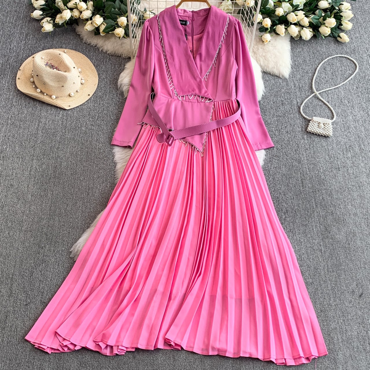 深みのあるローズピンクが華やかに映えるプリーツドレス。 Vネックの抜け感とウエストラインの切り替えで、スタイルアップを叶えます。 軽やかに揺れるプリーツが動くたびに表情を変え、凛とした女性らしさを演出。 【サイズ】 S 胸囲:86cm 袖丈:58cm 肩幅:35cm ウエスト:70cm 着丈:135cm M 胸囲:90cm 袖丈:59cm 肩幅:36cm ウエスト:74cm 着丈:136cm L 胸囲:94cm 袖丈:60cm 肩幅:37cm ウエスト:78cm 着丈:137cm XL 胸囲:98cm 袖丈:61cm 肩幅:38cm ウエスト:82cm 着丈:138cm 2XL 胸囲:102cm 袖丈:62cm 肩幅:39cm ウエスト:86cm 着丈:139cm ※海外製品のため、若干の誤差が生じる場合がございます。 あらかじめご了承ください。 【カラー】 ローズピンク 【素材】 ポリエステル 【お届けについて】 本商品は海外提携店舗より直接お届けいたします。 ご入金の確認後、おおよそ3週間前後で発送いたします。 【ご購入前にご確認ください】 ・在庫状況により、ご注文後でもキャンセルとさせていただく場合がございます。 ・海外製品のため、日本製品とは検品基準が異なります。新品未使用品でも、わずかな糸のほつれや軽微な汚れが見られる場合がございます。 ・商品の色味は、ご使用の端末やモニター環境により実際と異なる場合がございます。 ・イメージ違い・サイズ違いなど、お客様都合による返品・交換・キャンセルはお受けいたしかねます。 【ブランド公式サイト】 RANNÉ Official Site https://shop.ran-ne.com/ 【詳細ガイド】 ご購入前に必ずこちらをご覧ください。 https://shop.ran-ne.com/about 静かに纏うような美しさを ―― RANNÉは、日常にも特別な日にも寄り添うスタイルをお届けします。