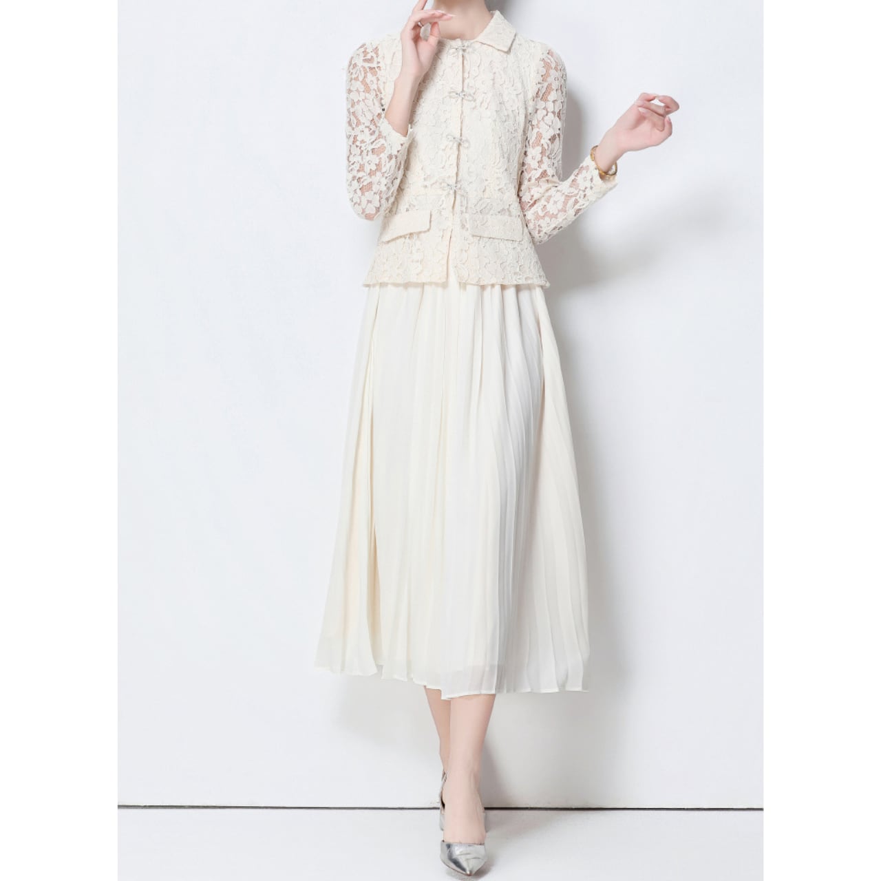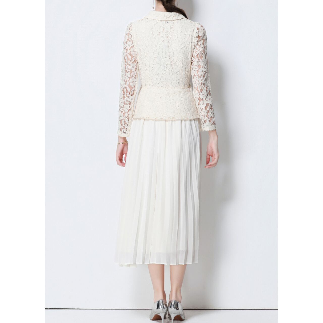 レースジャケットとプリーツスカートを組み合わせたような上品なセット風デザイン。 軽やかな素材感が動きに優しく寄り添い、シルエットを美しく見せてくれます。 どんな場面にも馴染む、クラシカルで柔らかな一枚。 【サイズ】 S 胸囲:86cm 袖丈:60cm 肩幅:35cm ウエスト:70cm 着丈:125cm M 胸囲:90cm 袖丈:61cm 肩幅:36cm ウエスト:74cm 着丈:126cm L 胸囲:94cm 袖丈:62cm 肩幅:37cm ウエスト:78cm 着丈:127cm XL 胸囲:98cm 袖丈:63cm 肩幅:38cm ウエスト:82cm 着丈:128cm 2XL 胸囲:102cm 袖丈:64cm 肩幅:39cm ウエスト:86cm 着丈:129cm ※海外製品のため、若干の誤差が生じる場合がございます。 あらかじめご了承ください。 【カラー】 アイボリー 【素材】 ポリエステル 【お届けについて】 本商品は海外提携店舗より直接お届けいたします。 ご入金の確認後、おおよそ3週間前後で発送いたします。 【ご購入前にご確認ください】 ・在庫状況により、ご注文後でもキャンセルとさせていただく場合がございます。 ・海外製品のため、日本製品とは検品基準が異なります。新品未使用品でも、わずかな糸のほつれや軽微な汚れが見られる場合がございます。 ・商品の色味は、ご使用の端末やモニター環境により実際と異なる場合がございます。 ・イメージ違い・サイズ違いなど、お客様都合による返品・交換・キャンセルはお受けいたしかねます。 【ブランド公式サイト】 RANNÉ Official Site https://shop.ran-ne.com/ 【詳細ガイド】 ご購入前に必ずこちらをご覧ください。 https://shop.ran-ne.com/about 静かに纏うような美しさを ―― RANNÉは、日常にも特別な日にも寄り添うスタイルをお届けします。
