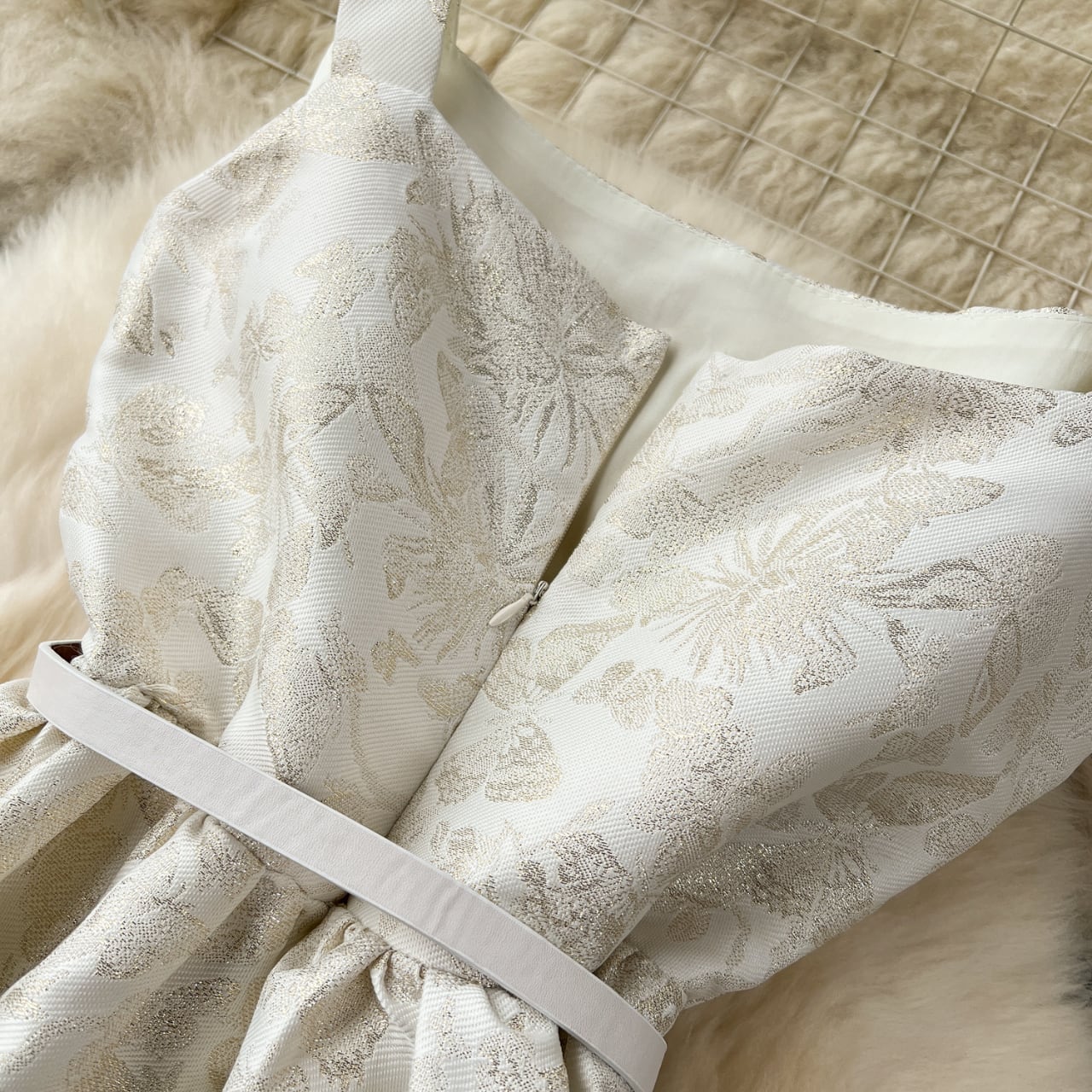 繊細なジャカード織りが織りなす花模様が、上品に浮かび上がるドレス。 やわらかな光沢が優雅に揺れ、特別な日をより印象的に演出します。 ウエストベルトでシルエットを引き締めつつ、スカートに広がるラインがクラシカルな女性らしさを引き立てます。 凛としていて、どこか儚げ。そんな美しさを纏う一枚です。 【サイズ】 S: 着丈114 バスト80 ウエスト66 肩幅38 M: 着丈115 バスト84 ウエスト70 肩幅40 L: 着丈116 バスト88 ウエスト74 肩幅42 XL: 着丈117 バスト92 ウエスト76 肩幅44 2XL:着丈118 バスト96 ウエスト80 肩幅46 ※海外製品のため、若干の誤差が生じる場合がございます。 あらかじめご了承ください。 【カラー】 ホワイト 【素材】 綿混合 【お届けについて】 本商品は海外提携店舗より直接お届けいたします。 ご入金の確認後、おおよそ3週間前後で発送いたします。 【ご購入前にご確認ください】 ・在庫状況により、ご注文後でもキャンセルとさせていただく場合がございます。 ・海外製品のため、日本製品とは検品基準が異なります。新品未使用品でも、わずかな糸のほつれや軽微な汚れが見られる場合がございます。 ・商品の色味は、ご使用の端末やモニター環境により実際と異なる場合がございます。 ・イメージ違い・サイズ違いなど、お客様都合による返品・交換・キャンセルはお受けいたしかねます。 【ブランド公式サイト】 RANNÉ Official Site https://shop.ran-ne.com/ 【詳細ガイド】 ご購入前に必ずこちらをご覧ください。 → https://shop.ran-ne.com/about 静かに纏うような美しさを ―― RANNÉは、日常にも特別な日にも寄り添うスタイルをお届けします。
