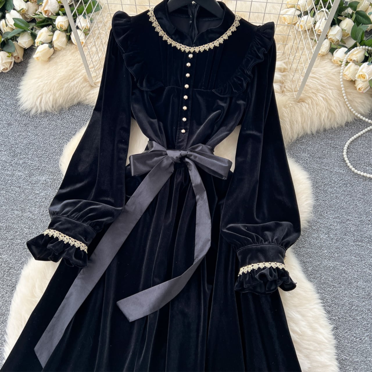 深みのあるベルベットが、静かに艶めく存在感を纏うドレス。 首元と袖口の装飾がさりげないアクセントとなり、気品のある佇まいへ。 落ち着いたブラックが凛とした美しさを引き立て、夜のシーンにも映える上質な一着。 【サイズ】 S: 着丈114 胸囲80 ウエスト66 袖丈60 肩幅40 M: 着丈115 胸囲84 ウエスト70 袖丈61 肩幅41 L: 着丈116 胸囲88 ウエスト74 袖丈62 肩幅42 XL:着丈117 胸囲92 ウエスト78 袖丈63 肩幅43 ※海外製品のため、若干の誤差が生じる場合がございます。 あらかじめご了承ください。 【カラー】 ブラック 【素材】 ポリエステル 【お届けについて】 本商品は海外提携店舗より直接お届けいたします。 ご入金の確認後、おおよそ3週間前後で発送いたします。 【ご購入前にご確認ください】 ・在庫状況により、ご注文後でもキャンセルとさせていただく場合がございます。 ・海外製品のため、日本製品とは検品基準が異なります。新品未使用品でも、わずかな糸のほつれや軽微な汚れが見られる場合がございます。 ・商品の色味は、ご使用の端末やモニター環境により実際と異なる場合がございます。 ・イメージ違い・サイズ違いなど、お客様都合による返品・交換・キャンセルはお受けいたしかねます。 【ブランド公式サイト】 RANNÉ Official Site https://shop.ran-ne.com/ 【詳細ガイド】 ご購入前に必ずこちらをご覧ください。 https://shop.ran-ne.com/about 静かに纏うような美しさを ―― RANNÉは、日常にも特別な日にも寄り添うスタイルをお届けします。