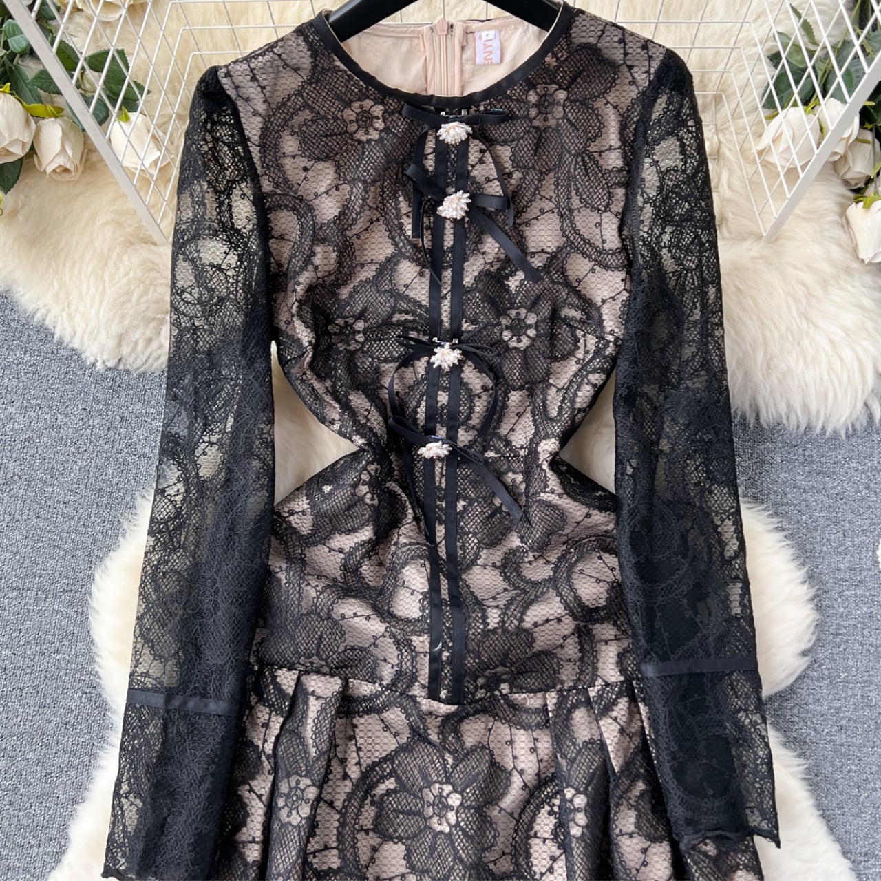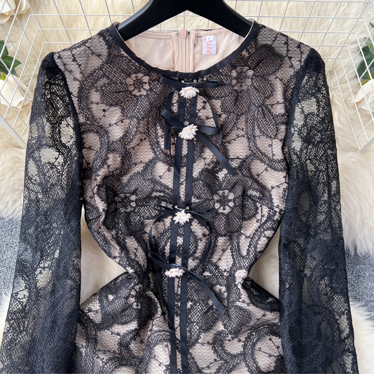 静かに咲くレースの花模様を纏った、凛とした気品の一着。 胸元の小さなリボンがやさしく佇み、淡いアイボリーが柔らかく肌を照らします。 軽やかな揺れ感と上品な透け感で、特別な日も日常も静かに美しく。 【サイズ】 S: 肩幅:35cm 胸囲:84cm ウエスト:68cm 総丈:117cm M: 肩幅:36cm 胸囲:88cm ウエスト:72cm 総丈:118cm L: 肩幅:37cm 胸囲:92cm ウエスト:76cm 総丈:119cm XL: 肩幅:38cm 胸囲:96cm ウエスト:80cm 総丈:120cm 2XL:肩幅:39cm 胸囲:100cm ウエスト:84cm 総丈:121cm ※海外製品のため、若干の誤差が生じる場合がございます。 あらかじめご了承ください。 【カラー】 ブラック 【素材】 ポリエステル 【お届けについて】 本商品は海外提携店舗より直接お届けいたします。 ご入金の確認後、おおよそ3週間前後で発送いたします。 【ご購入前にご確認ください】 ・在庫状況により、ご注文後でもキャンセルとさせていただく場合がございます。 ・海外製品のため、日本製品とは検品基準が異なります。新品未使用品でも、わずかな糸のほつれや軽微な汚れが見られる場合がございます。 ・商品の色味は、ご使用の端末やモニター環境により実際と異なる場合がございます。 ・イメージ違い・サイズ違いなど、お客様都合による返品・交換・キャンセルはお受けいたしかねます。 【ブランド公式サイト】 RANNÉ Official Site https://shop.ran-ne.com/ 【詳細ガイド】 ご購入前に必ずこちらをご覧ください。 https://shop.ran-ne.com/about 静かに纏うような美しさを ―― RANNÉは、日常にも特別な日にも寄り添うスタイルをお届けします。