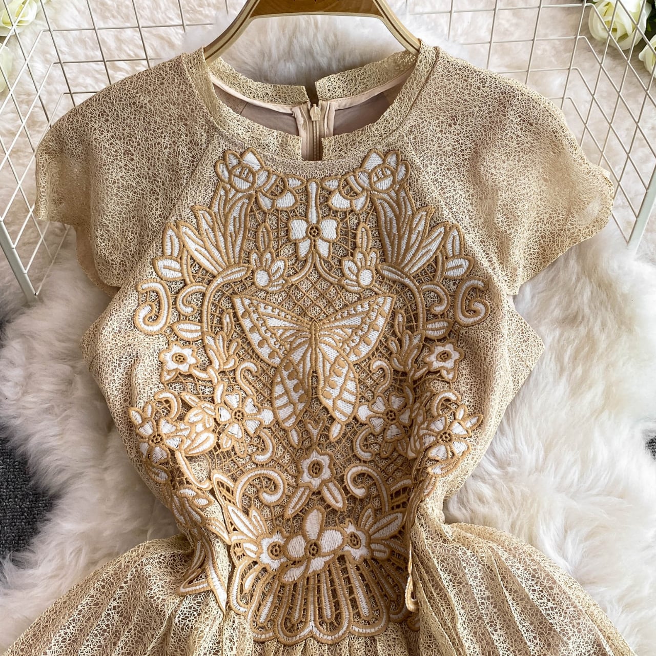 繊細なレースの静かな華やぎと、プリーツの流れが上品に重なるワンピース。 淡いベージュがやさしく肌に馴染み、凛とした存在感を纏わせてくれます。 落ち着いた佇まいで、特別な日にも品よく。 【サイズ】 S: 胸囲:81cm ウエスト:66cm 袖丈:連肩袖20cm 総丈:119cm M: 胸囲:85cm ウエスト:70cm 袖丈:連肩袖21cm 総丈:120cm L: 胸囲:89cm ウエスト:74cm 袖丈:連肩袖22cm 総丈:121cm XL: 胸囲:93cm ウエスト:78cm 袖丈:連肩袖23cm 総丈:122cm 2XL:胸囲:97cm ウエスト:82cm 袖丈:連肩袖24cm 総丈:123cm ※海外製品のため、若干の誤差が生じる場合がございます。 あらかじめご了承ください。 【カラー】 アイボリー 【素材】 ポリエステル 【お届けについて】 本商品は海外提携店舗より直接お届けいたします。 ご入金の確認後、おおよそ3週間前後で発送いたします。 【ご購入前にご確認ください】 ・在庫状況により、ご注文後でもキャンセルとさせていただく場合がございます。 ・海外製品のため、日本製品とは検品基準が異なります。新品未使用品でも、わずかな糸のほつれや軽微な汚れが見られる場合がございます。 ・商品の色味は、ご使用の端末やモニター環境により実際と異なる場合がございます。 ・イメージ違い・サイズ違いなど、お客様都合による返品・交換・キャンセルはお受けいたしかねます。 【ブランド公式サイト】 RANNÉ Official Site https://shop.ran-ne.com/ 【詳細ガイド】 ご購入前に必ずこちらをご覧ください。 https://shop.ran-ne.com/about 静かに纏うような美しさを ―― RANNÉは、日常にも特別な日にも寄り添うスタイルをお届けします。