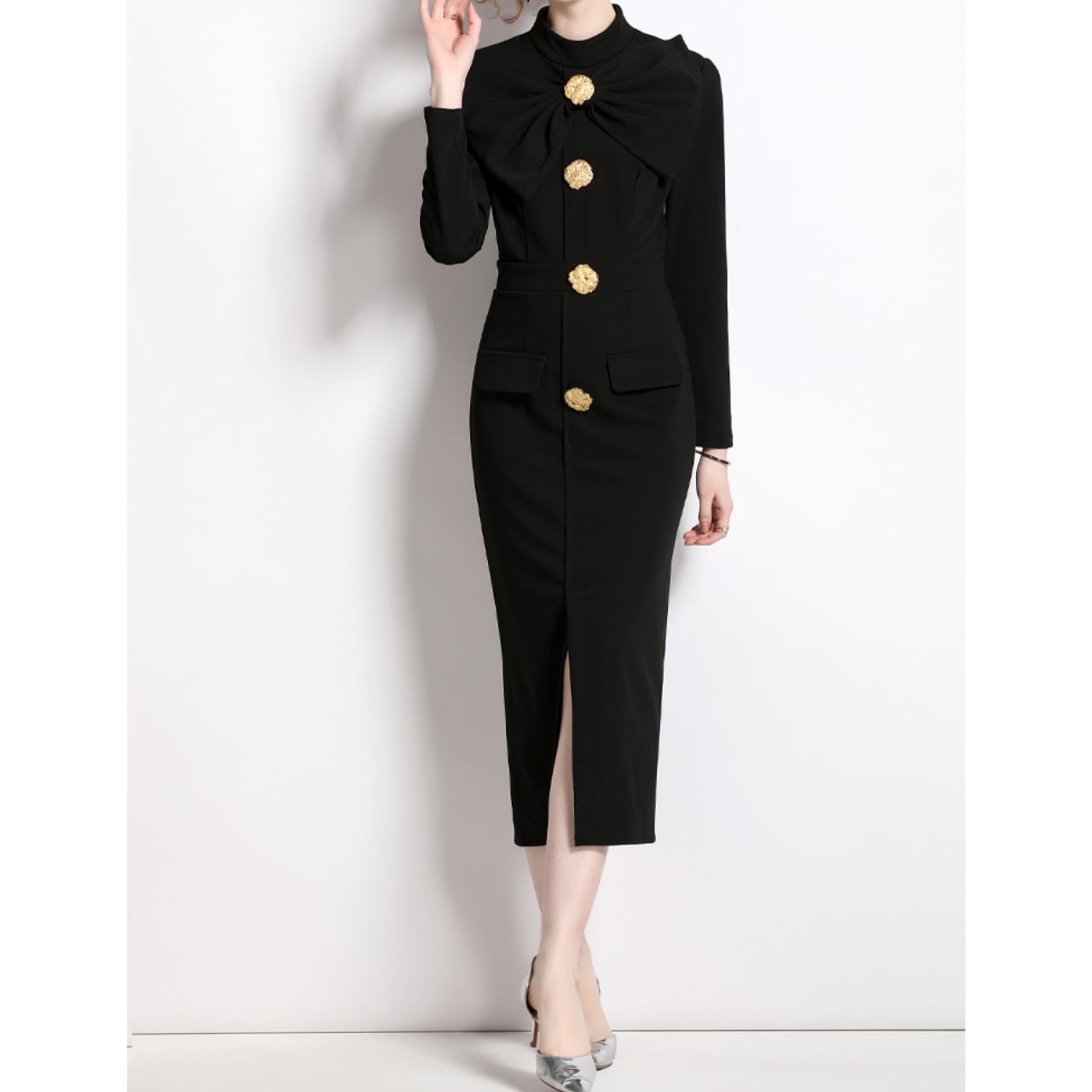 胸元の大きなリボンが静かに華やぐ一枚。 すらりとしたシルエットが上品さを引き立て、控えめな煌めきのボタンがアクセントに。 特別な日にも、凛とした装いを纏いたいときにも。 【サイズ】 M: 肩幅:39cm 胸囲:76〜116cm ウエスト:62〜96cm 袖丈:65cm 総丈:135cm L: 肩幅:40cm 胸囲:80〜120cm ウエスト:66〜100cm 袖丈:66cm 総丈:136cm XL: 肩幅:41cm 胸囲:84〜124cm ウエスト:70〜104cm 袖丈:67cm 総丈:137cm 2XL:肩幅:42cm 胸囲:88〜128cm ウエスト:74〜108cm 袖丈:68cm 総丈:138cm ※海外製品のため、若干の誤差が生じる場合がございます。 あらかじめご了承ください。 【カラー】 ブラック 【素材】 ポリエステル 【お届けについて】 本商品は海外提携店舗より直接お届けいたします。 ご入金の確認後、おおよそ3週間前後で発送いたします。 【ご購入前にご確認ください】 ・在庫状況により、ご注文後でもキャンセルとさせていただく場合がございます。 ・海外製品のため、日本製品とは検品基準が異なります。新品未使用品でも、わずかな糸のほつれや軽微な汚れが見られる場合がございます。 ・商品の色味は、ご使用の端末やモニター環境により実際と異なる場合がございます。 ・イメージ違い・サイズ違いなど、お客様都合による返品・交換・キャンセルはお受けいたしかねます。 【ブランド公式サイト】 RANNÉ Official Site https://shop.ran-ne.com/ 【詳細ガイド】 ご購入前に必ずこちらをご覧ください。 https://shop.ran-ne.com/about 静かに纏うような美しさを ―― RANNÉは、日常にも特別な日にも寄り添うスタイルをお届けします。