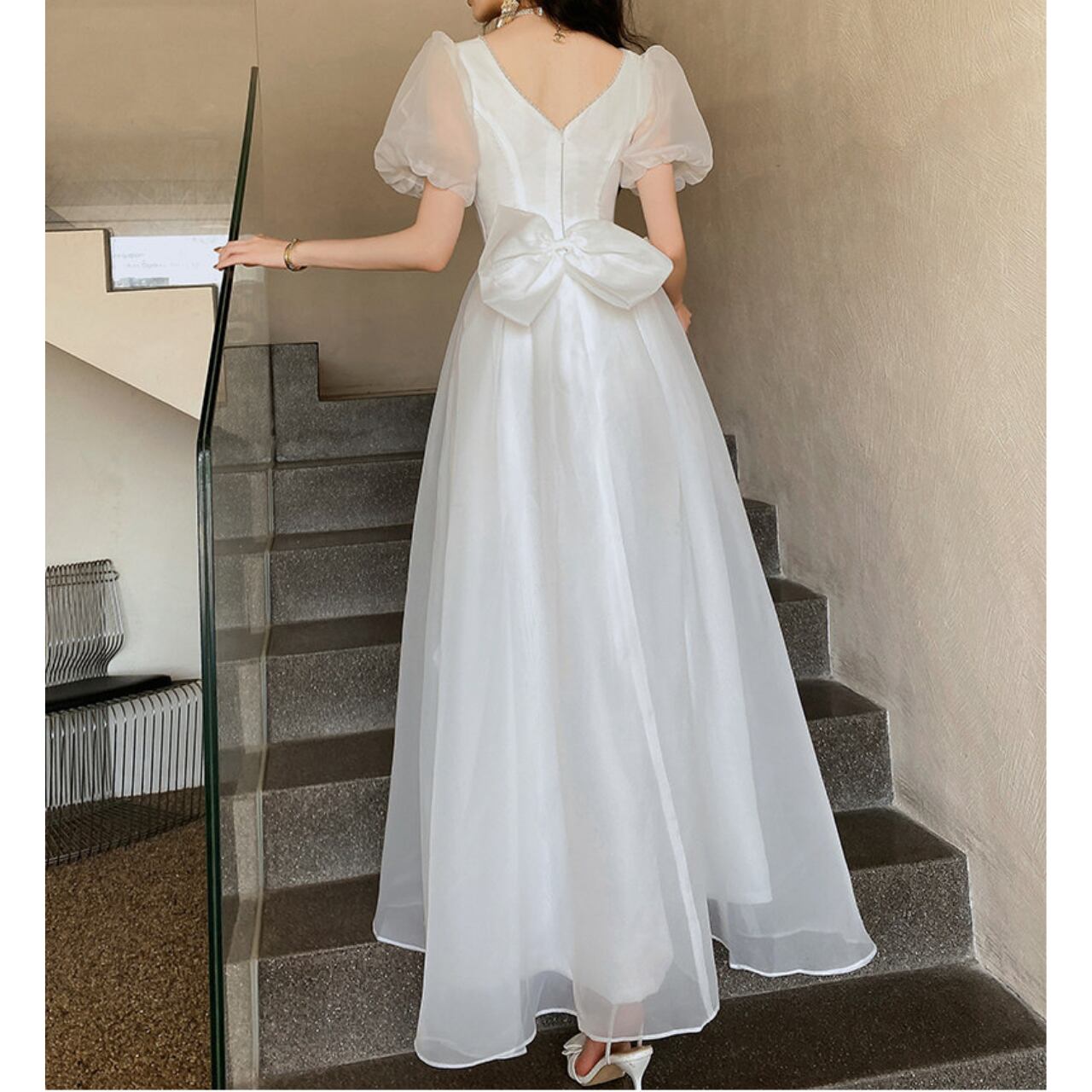 やわらかな光をまとった、軽やかなロングドレス。 透け感のあるパフスリーブと、背中に結んだリボンが後ろ姿まで静かな余韻を残します。 【サイズ】 XS: 胸囲:80cm ウエスト:63cm S: 胸囲:83cm ウエスト:66cm M: 胸囲:86cm ウエスト:70cm L: 胸囲:90cm ウエスト:73cm XL: 胸囲:93cm ウエスト:76cm 2XL:胸囲:96cm ウエスト:80cm ※海外製品のため、若干の誤差が生じる場合がございます。 あらかじめご了承ください。 【カラー】 ホワイト 【素材】 ポリエステル 【お届けについて】 本商品は海外提携店舗より直接お届けいたします。 ご入金の確認後、おおよそ3週間前後で発送いたします。 【ご購入前にご確認ください】 ・在庫状況により、ご注文後でもキャンセルとさせていただく場合がございます。 ・海外製品のため、日本製品とは検品基準が異なります。新品未使用品でも、わずかな糸のほつれや軽微な汚れが見られる場合がございます。 ・商品の色味は、ご使用の端末やモニター環境により実際と異なる場合がございます。 ・イメージ違い・サイズ違いなど、お客様都合による返品・交換・キャンセルはお受けいたしかねます。 【ブランド公式サイト】 RANNÉ Official Site https://shop.ran-ne.com/ 【詳細ガイド】 ご購入前に必ずこちらをご覧ください。 https://shop.ran-ne.com/about 静かに纏うような美しさを ―― RANNÉは、日常にも特別な日にも寄り添うスタイルをお届けします。
